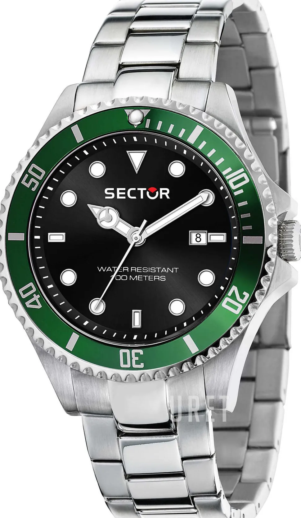 | Bezel (ring): | Stål, grön, vridbar motsols |