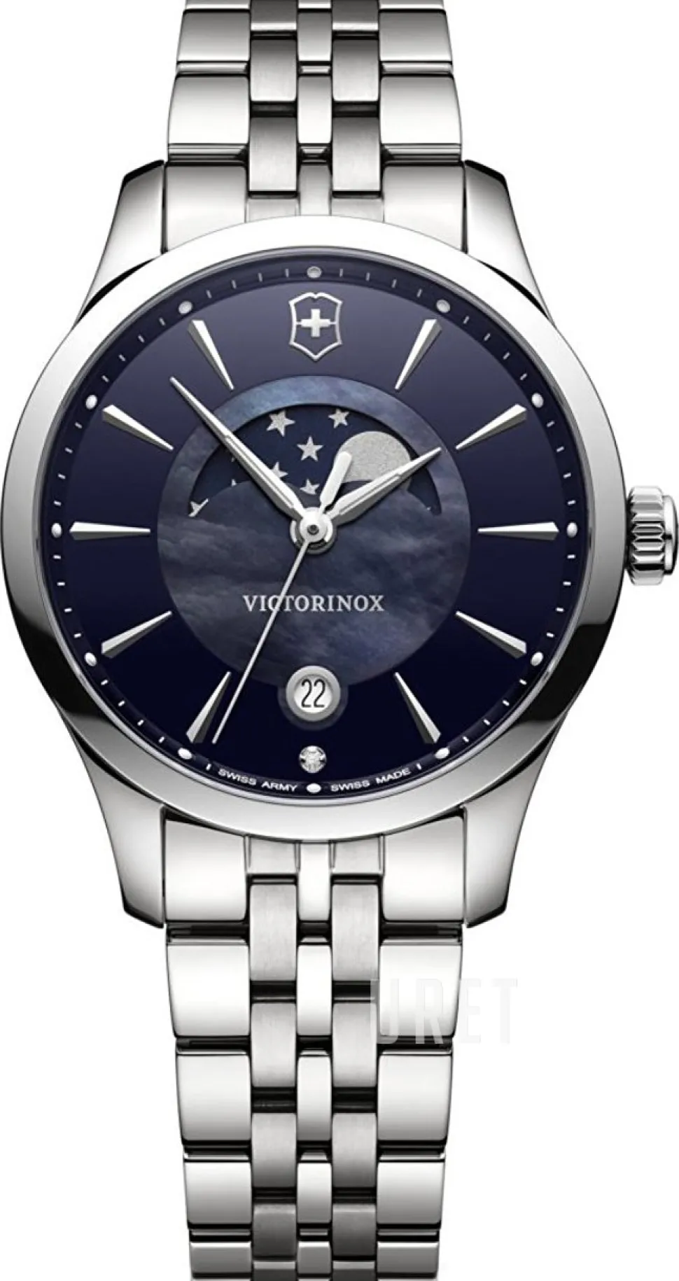 | Urtavla: | Blå pärlemor med indexmarkeringar, självlysande visare |