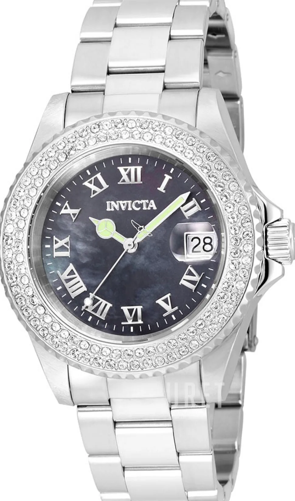 | Urtavla: | Svart pärlemor med romerska siffror och indexmarkeringar, självlysande visare |