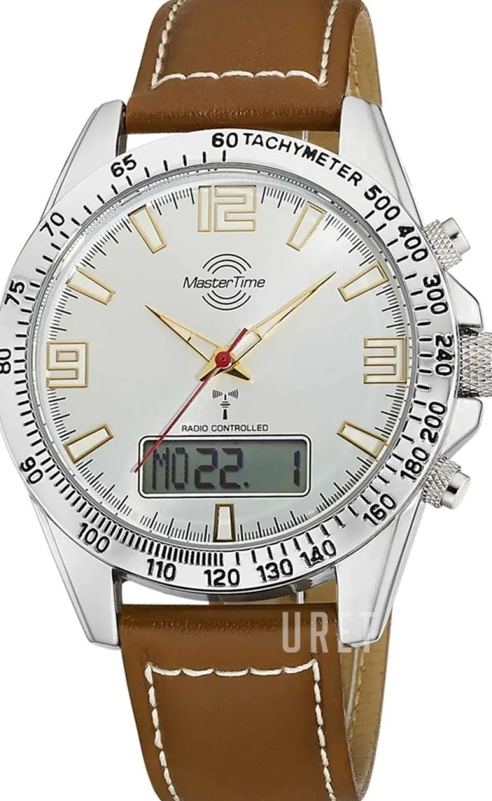 | Urtavla: | Silverfärgad digital med självlysande markeringar arabiska siffror och indexmarkeringar, självlysande visare |
