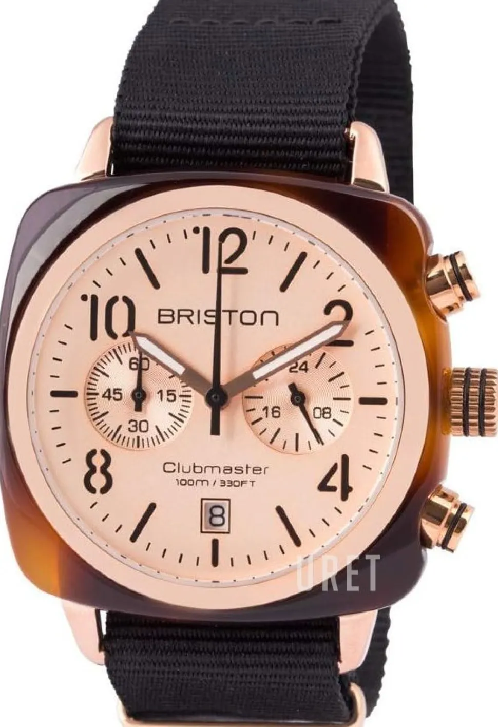 | Urtavla: | Roséguldstonad med självlysande markeringar arabiska siffror och indexmarkeringar, självlysande visare |