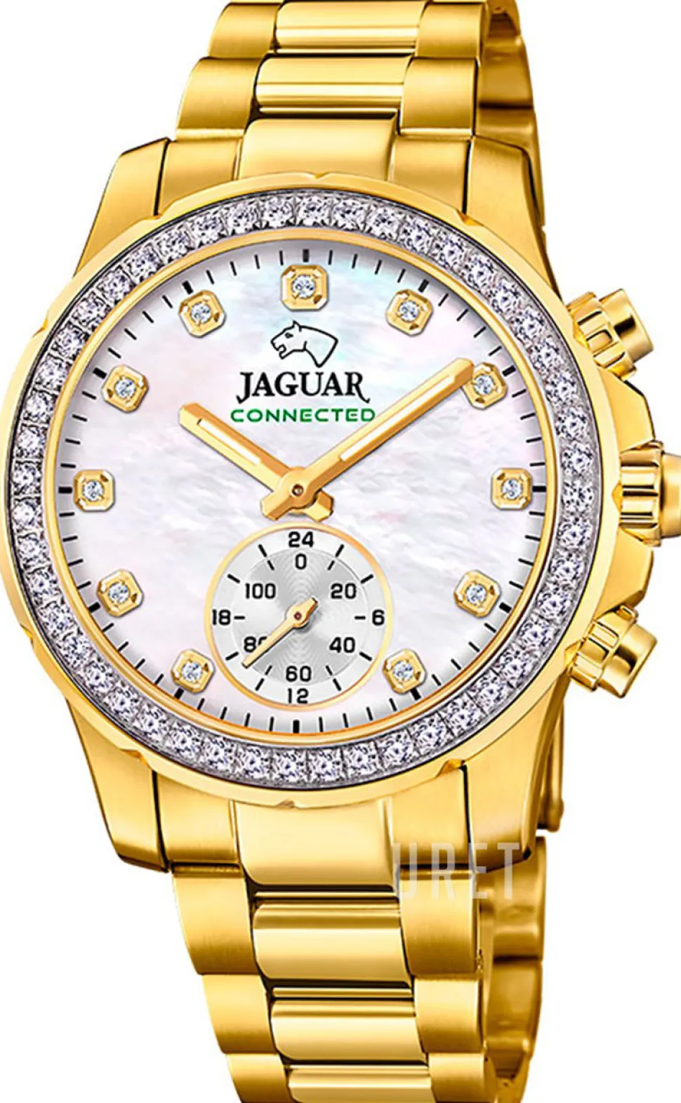 | Bezel (ring): | Gulguldtonat stål, kristallinfattat |