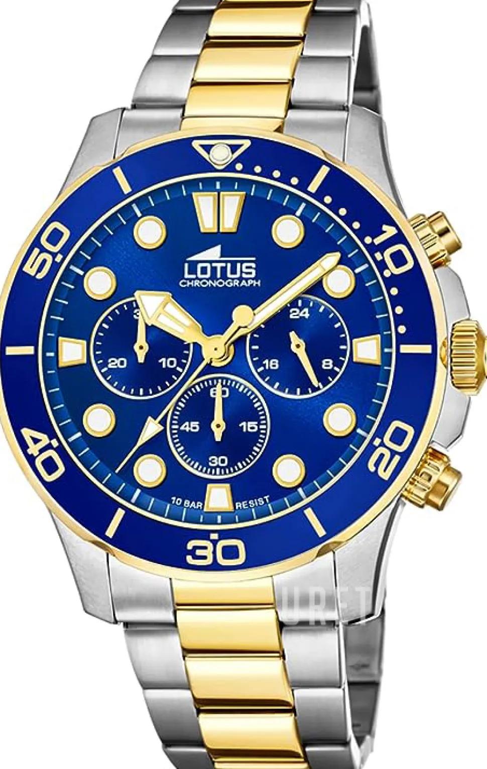 | Bezel (ring): | Stål gulguldtonat stål, blå |