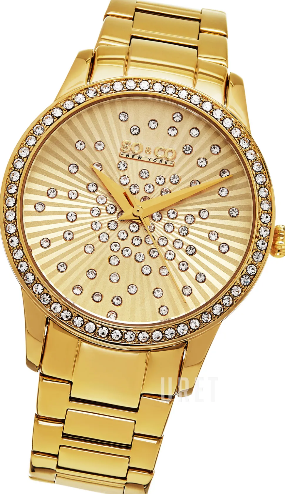 | Bezel (ring): | Gulguldtonat stål, kristallinfattat |