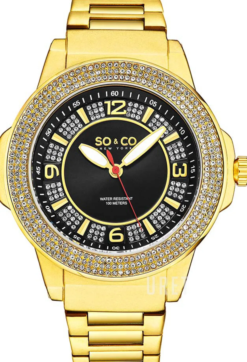 | Urtavla: | Svart med kristaller med arabiska siffror och indexmarkeringar, självlysande visare |
