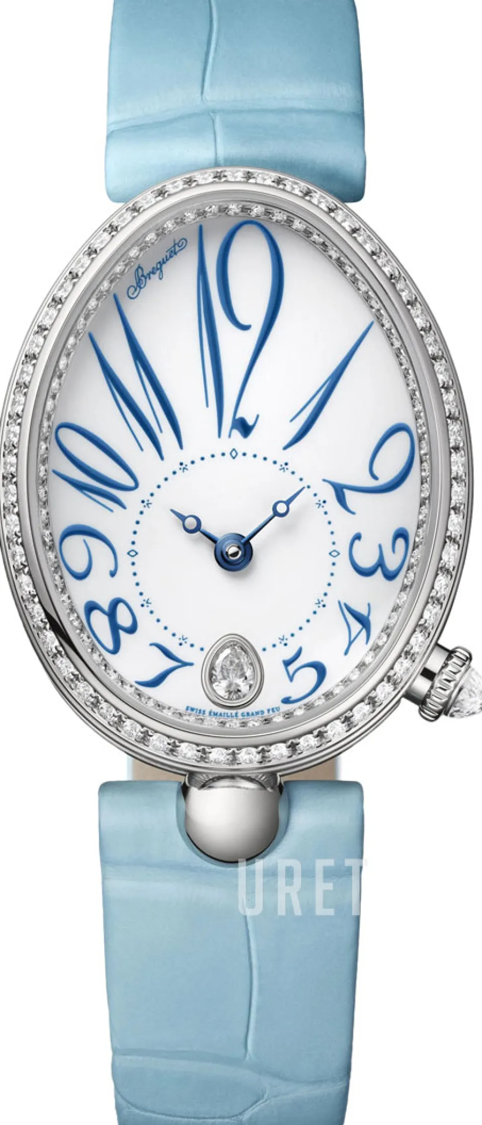 | Urtavla: | Vit pärlemor med arabiska siffror, diamanter och indexmarkeringar |