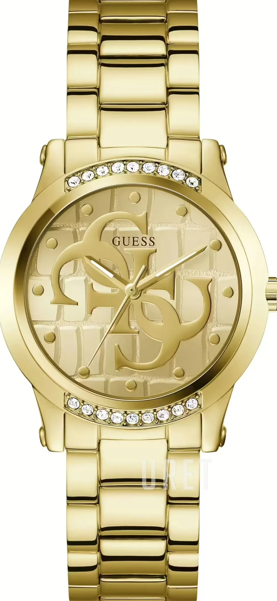 | Bezel (ring): | Gulguldtonat stål, kristallinfattat |