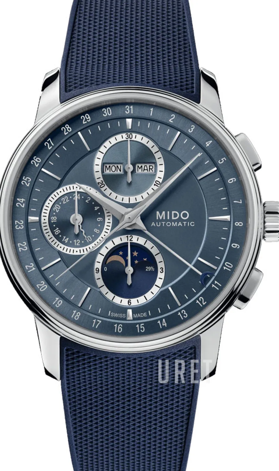 | Funktioner: | – Månfas – 24 timmarsvisning – Separat sekundvisning – Kronograf |