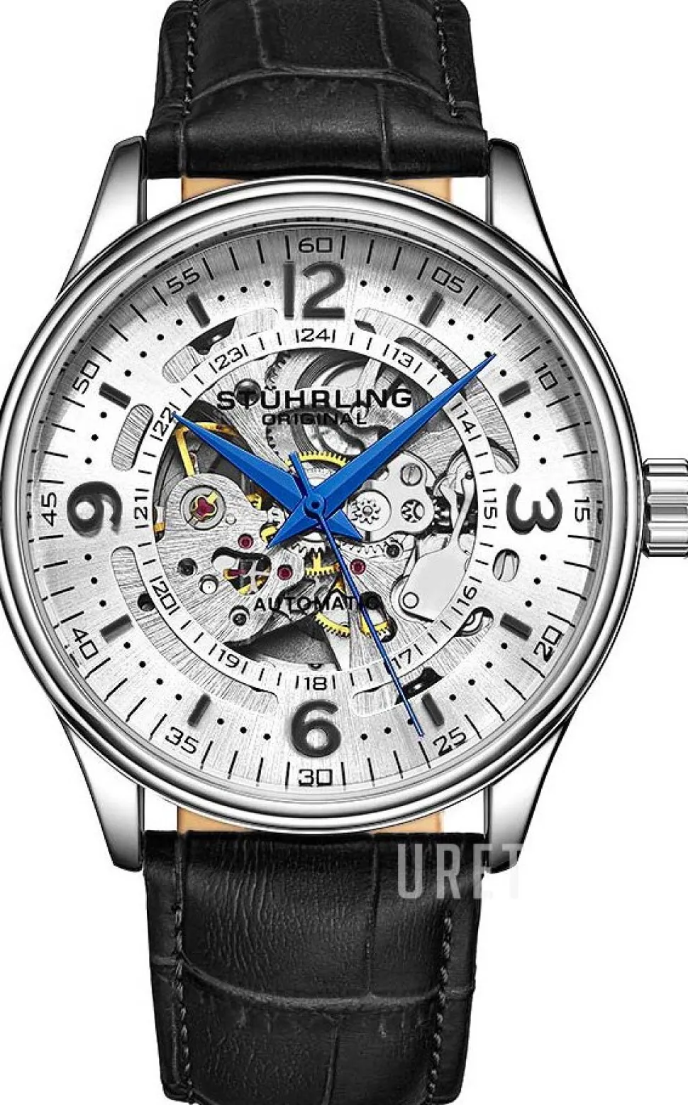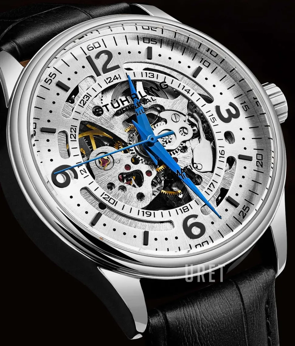 | Urtavla: | Silverfärgad skelettur med arabiska siffror och indexmarkeringar |