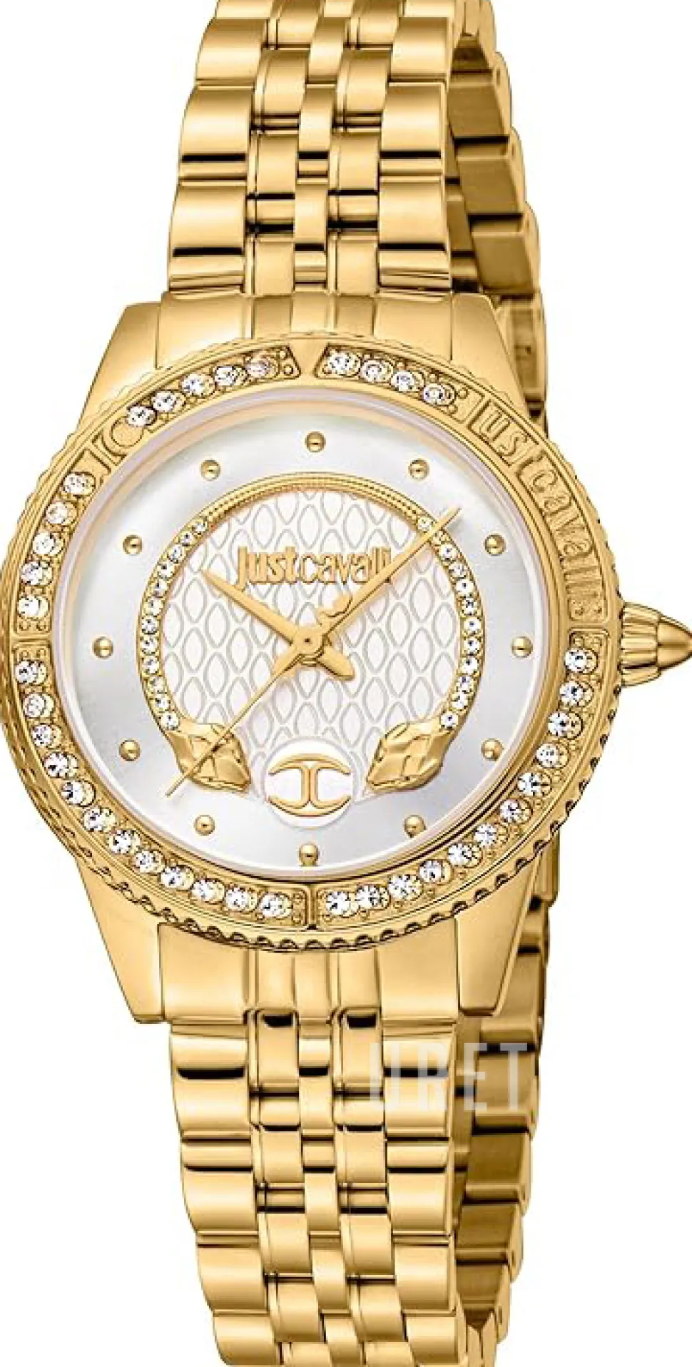 | Bezel (ring): | Gulguldtonat stål, kristallinfattat |