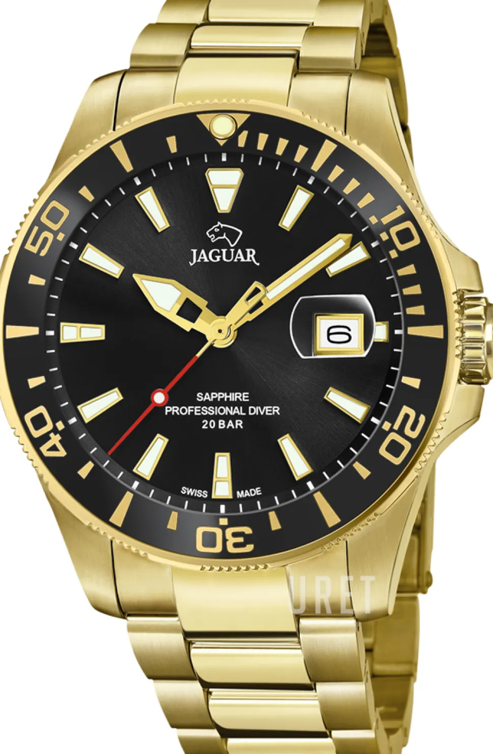 | Bezel (ring): | Stål gulguldtonat stål, svart, vridbar motsols |