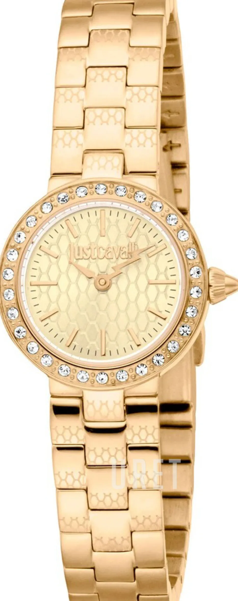 | Bezel (ring): | Gulguldtonat stål, kristallinfattat |
