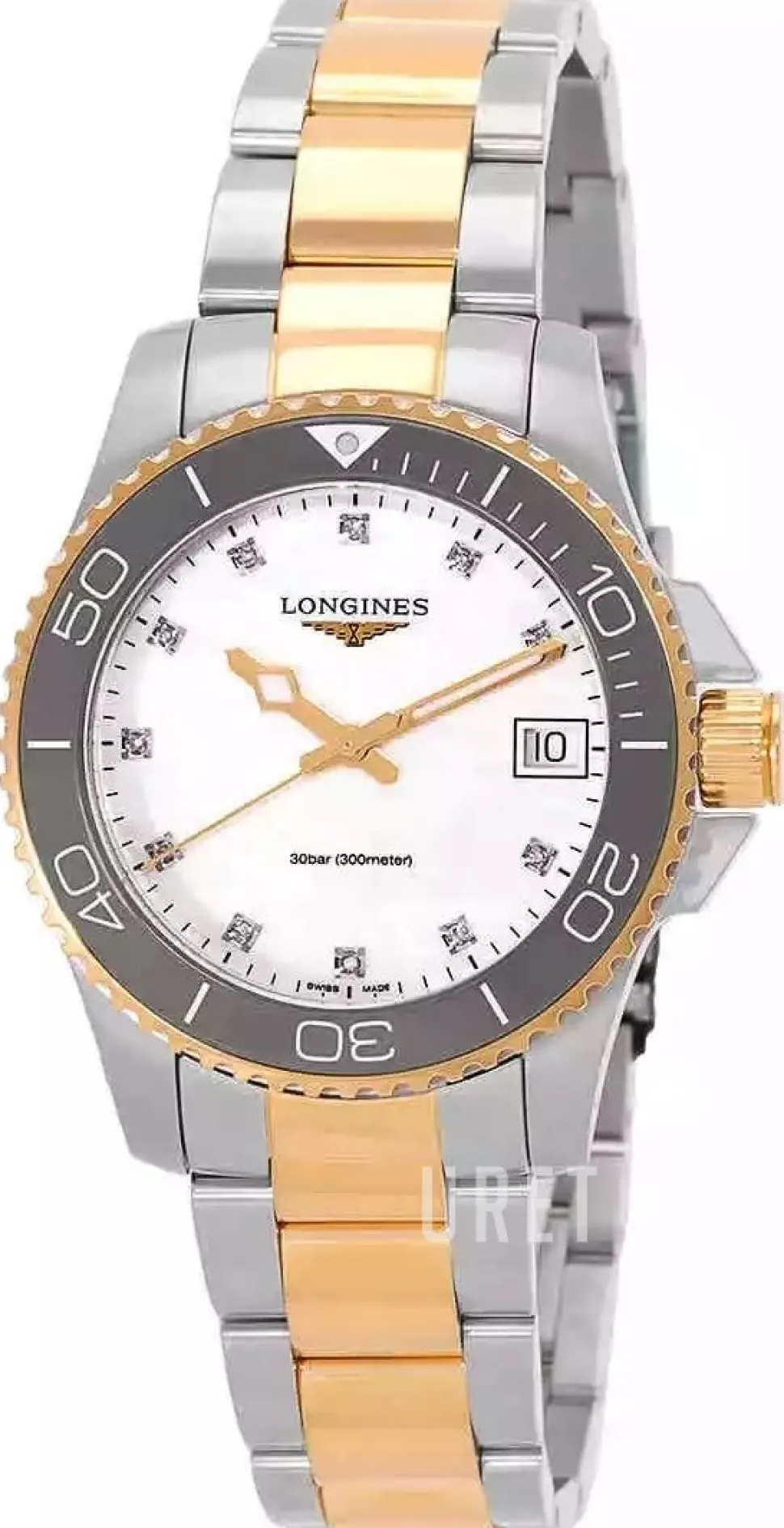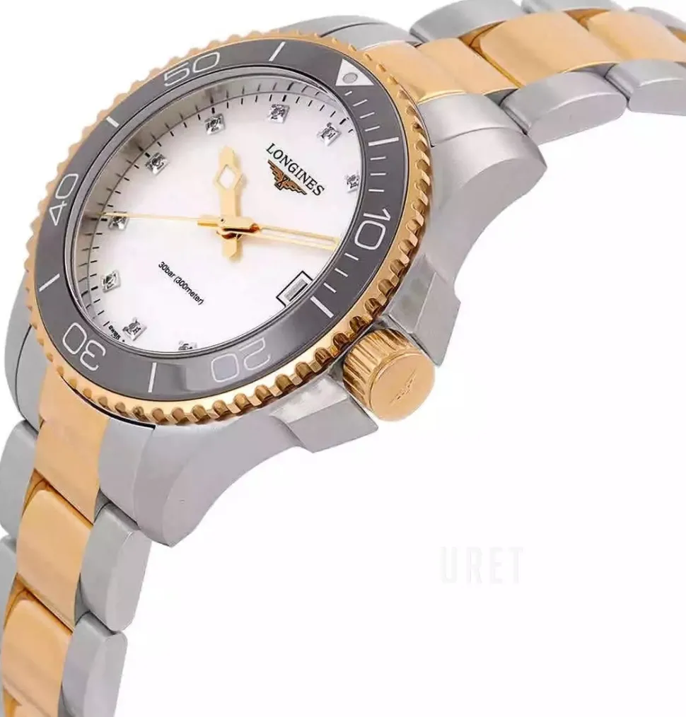 | Urtavla: | Vit pärlemor med diamanter, självlysande visare |