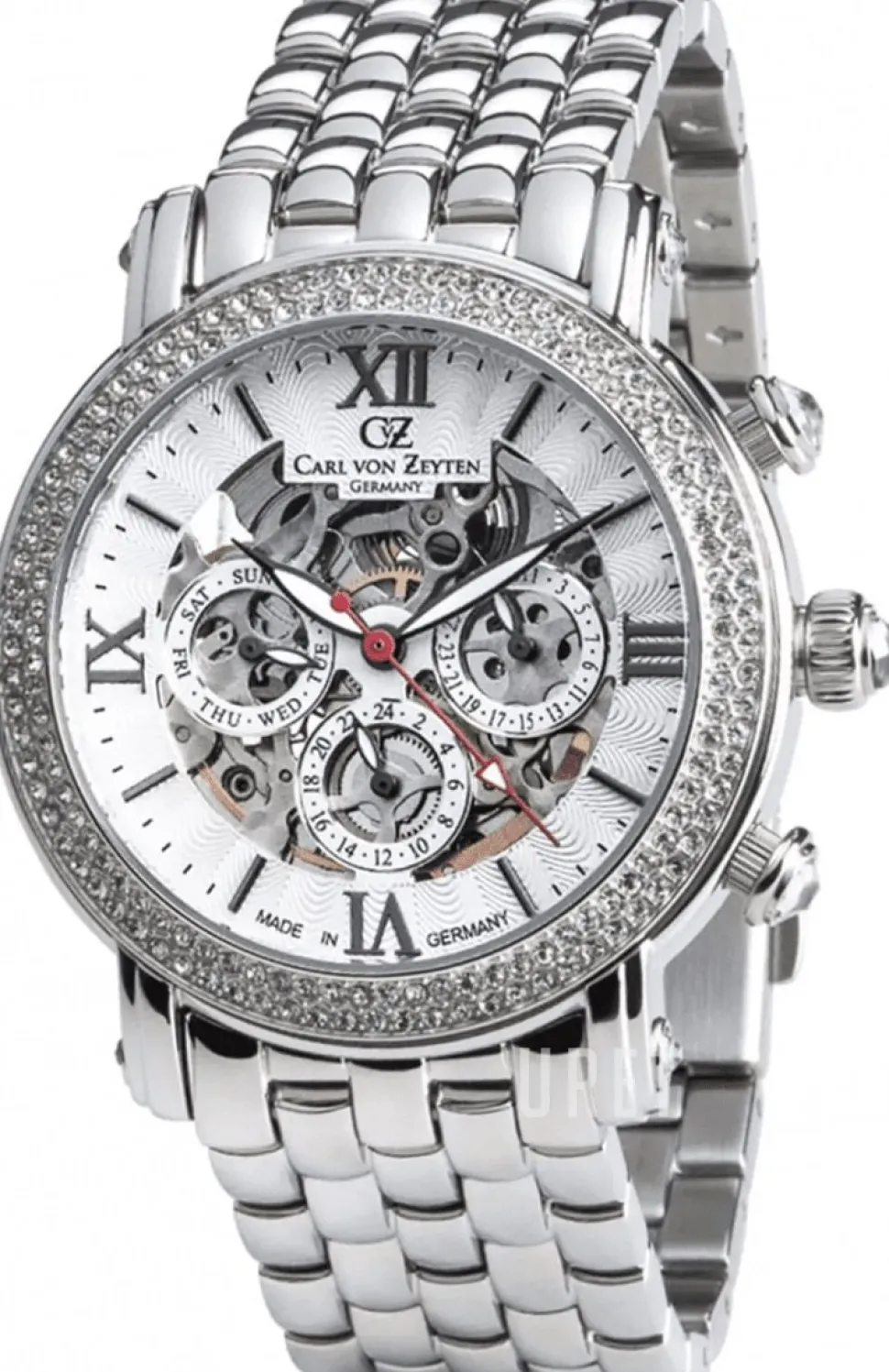| Urtavla: | Vit skelettur med romerska siffror och indexmarkeringar, självlysande visare |
