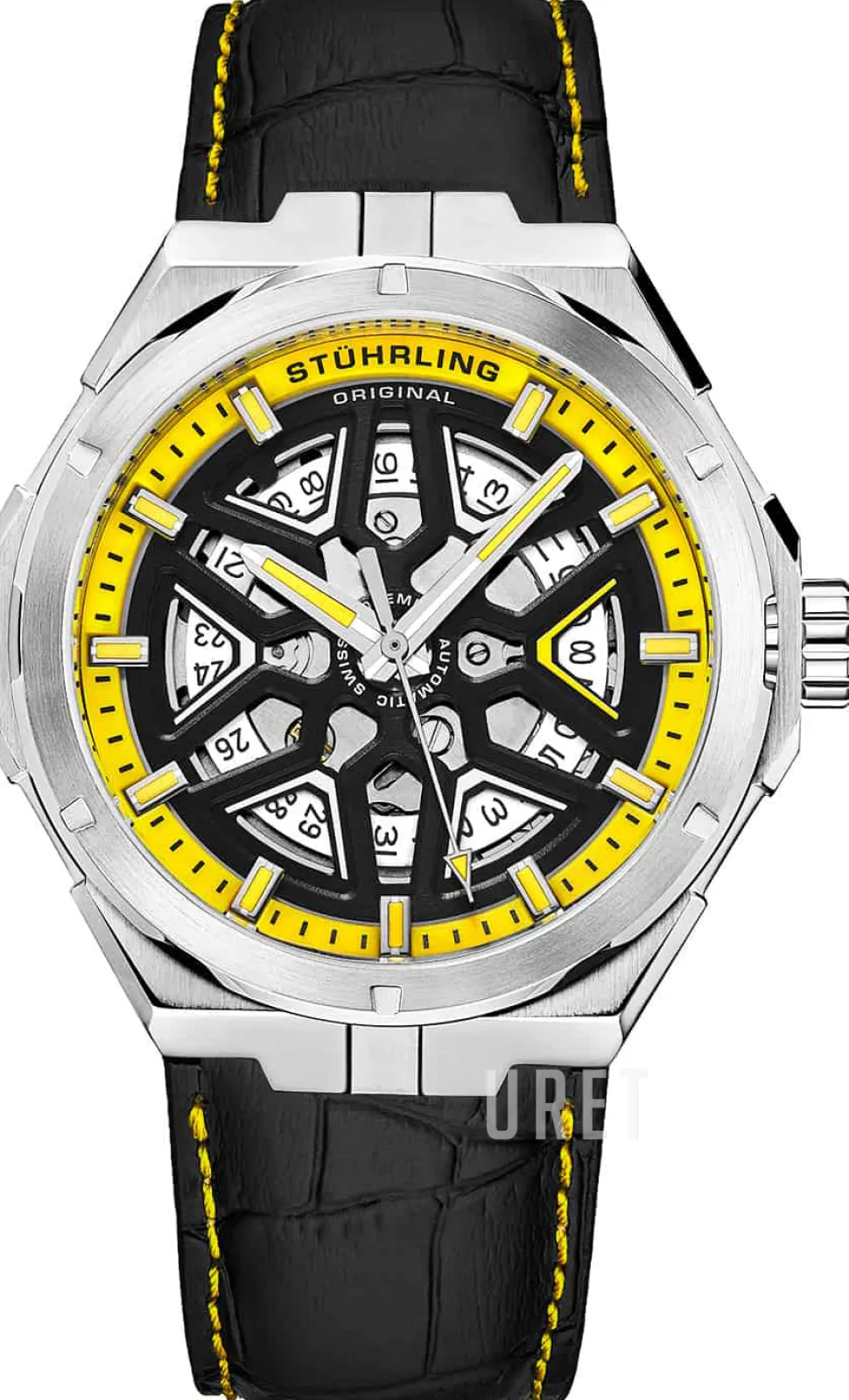| Urtavla: | Svart skelettur med självlysande markeringar indexmarkeringar, självlysande visare |