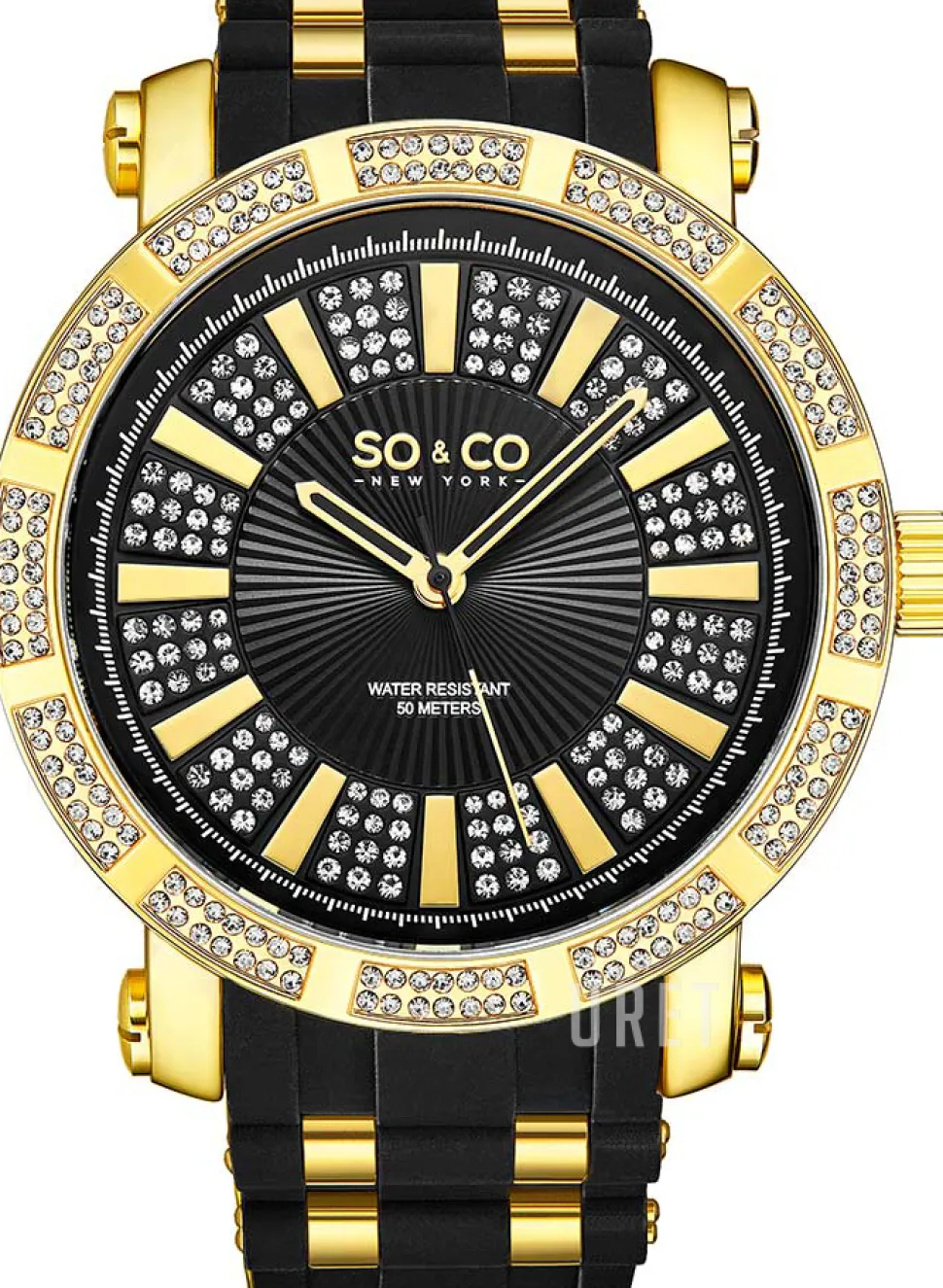 | Bezel (ring): | Gulguldtonat stål, kristallinfattat |
