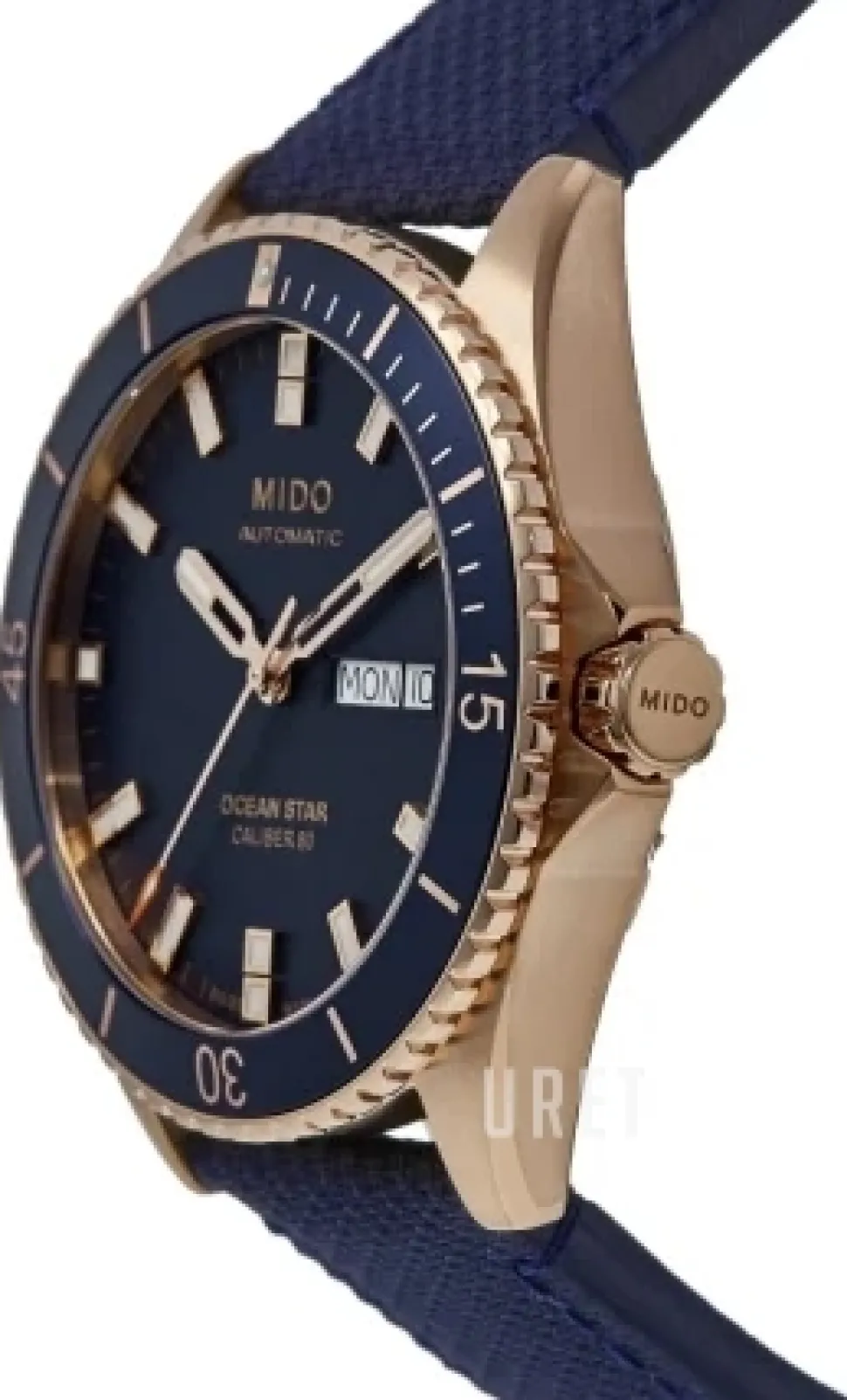 | Bezel (ring): | Stål roséguldstonad, blå, vridbar motsols |