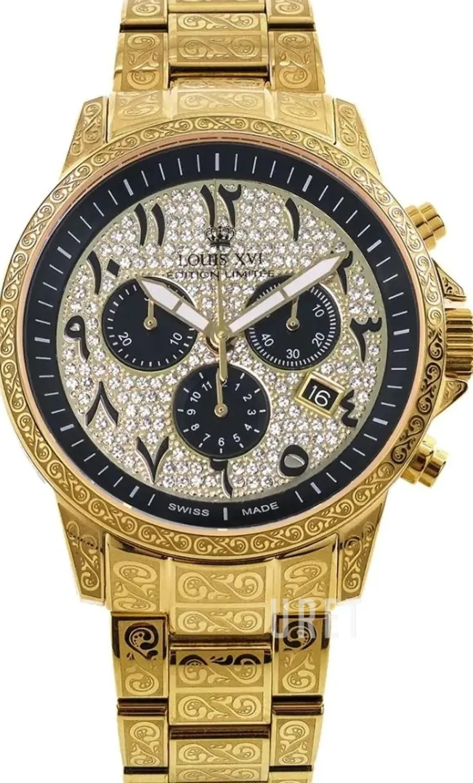 | Urtavla: | Diamantinfattad med självlysande markeringar arabiska siffror, självlysande visare |