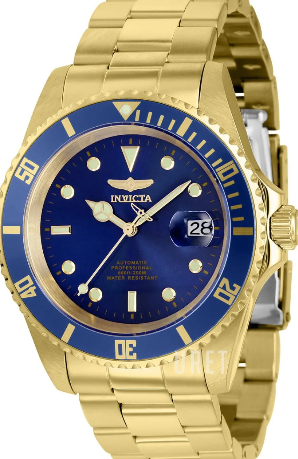 | Bezel (ring): | Stål gulguldtonat stål, blå, vridbar motsols |