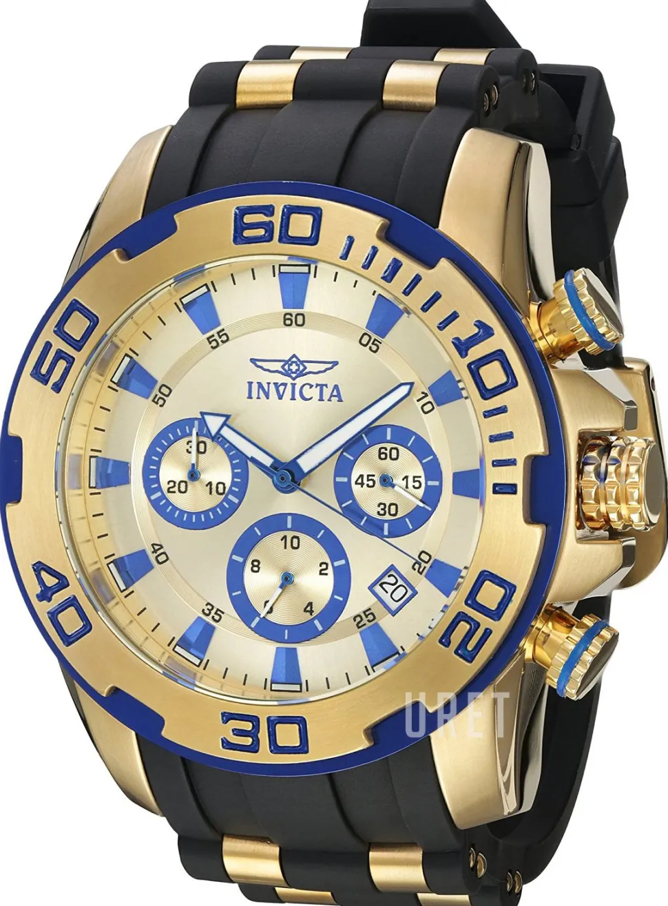 | Armband: | Svart gummi gulguldtonat stål |