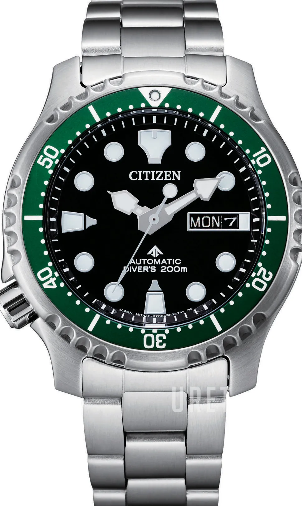 | Bezel (ring): | Stål, grön, vridbar motsols |