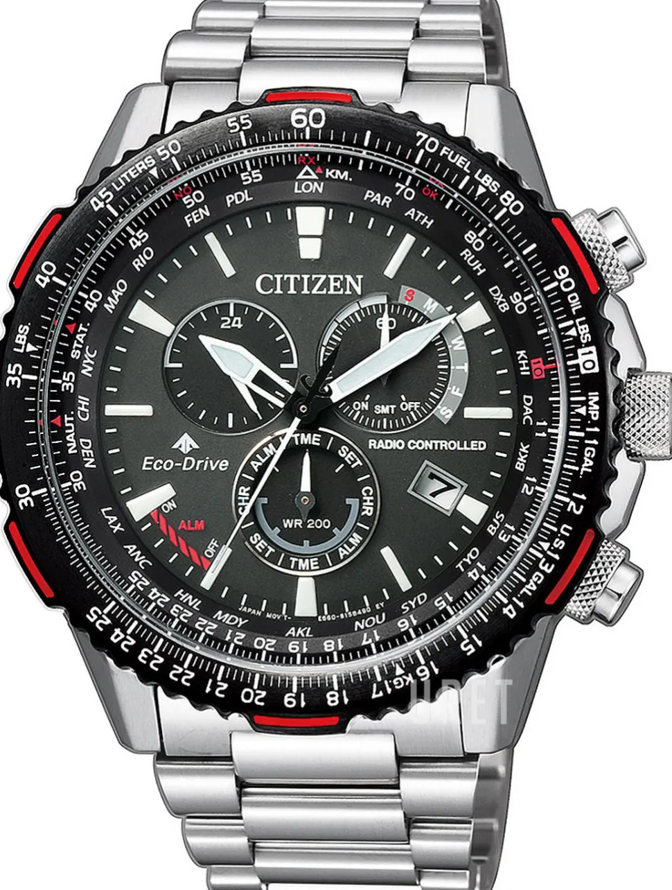 | Funktioner: | – Världstid – 24 timmarsvisning – Alarm – Separat sekundvisning – Kronograf |