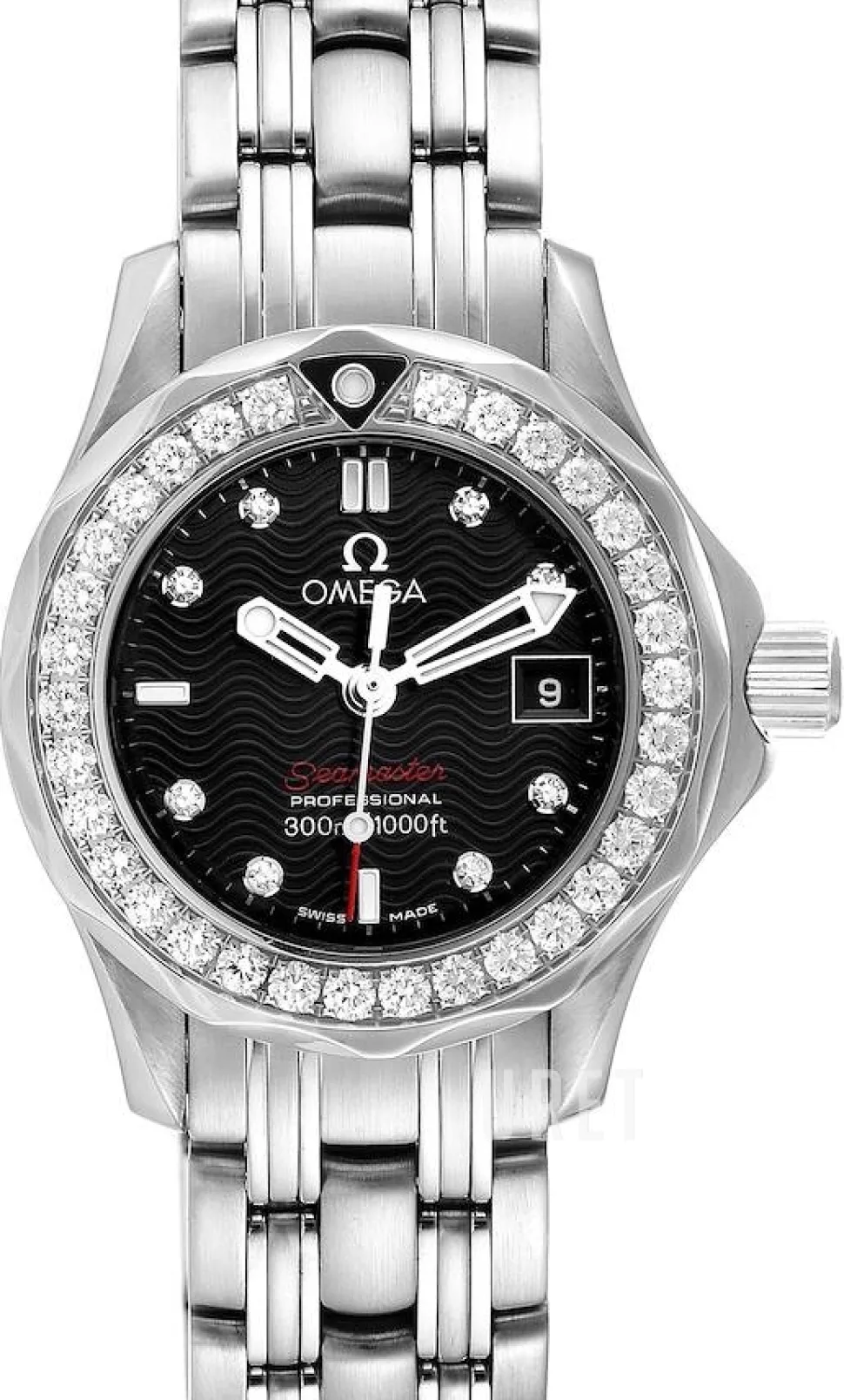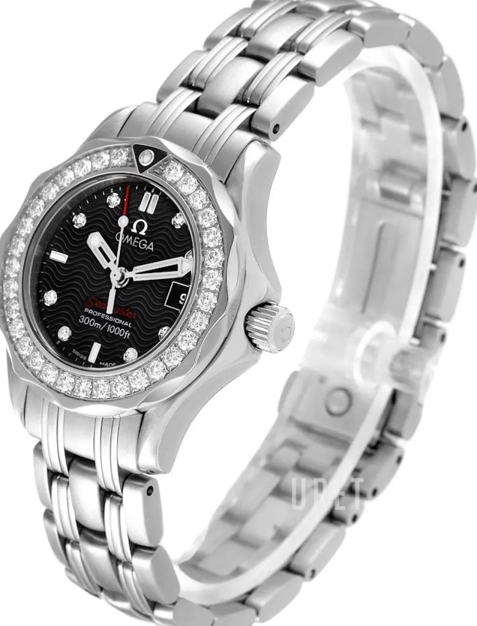 | Bezel (ring): | Stål, diamantinfattat, vridbar motsols |