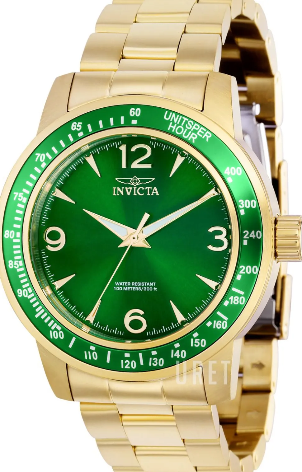 | Bezel (ring): | Stål gulguldtonat stål, grön |