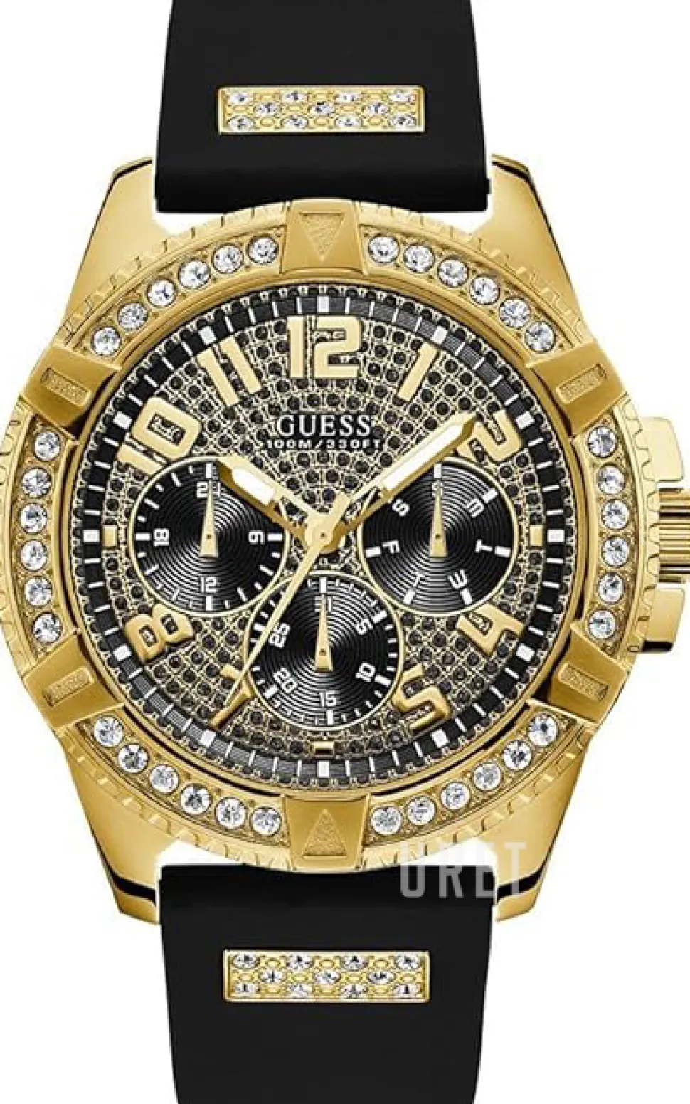 | Armband: | Kristallinfattat gummi gulguldtonat stål |