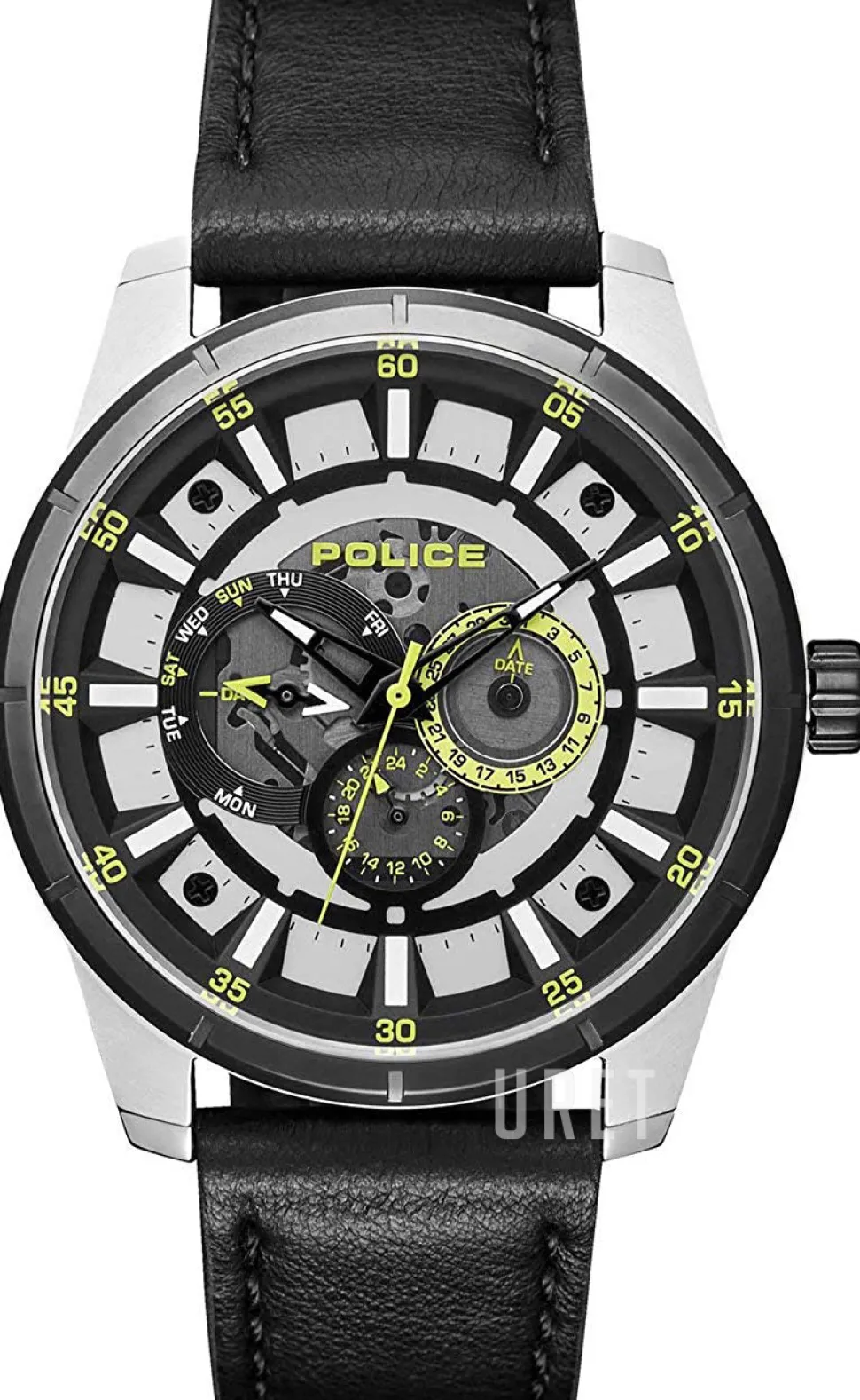 | Urtavla: | Svart skelettur med självlysande markeringar indexmarkeringar, självlysande visare |
