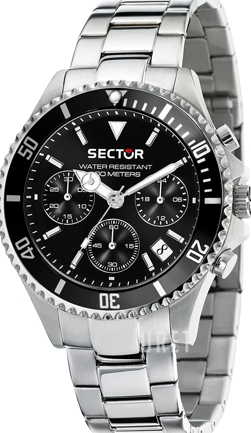 | Bezel (ring): | Stål, svart, vridbar motsols |