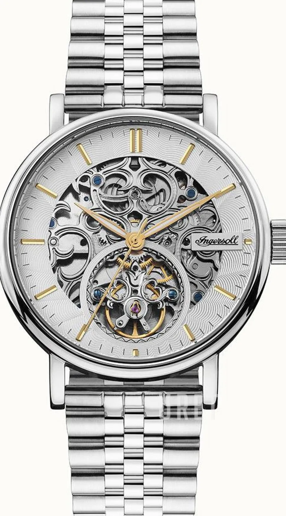 | Urtavla: | Silverfärgad skelettur med indexmarkeringar, självlysande visare |