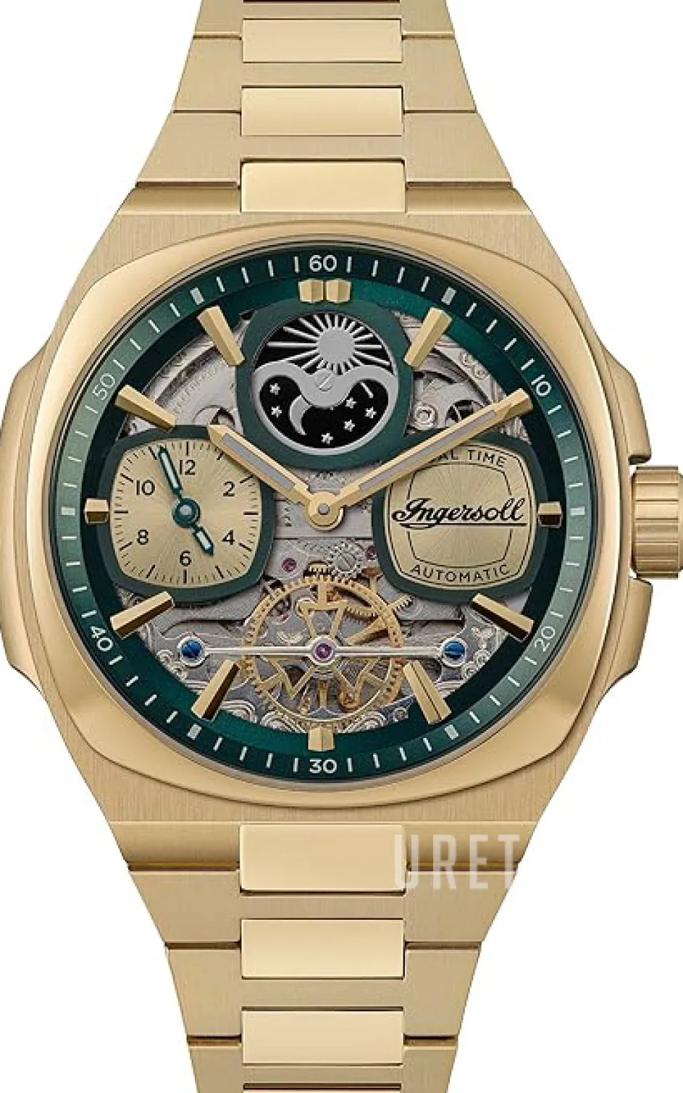 | Urtavla: | Grön skelettur med indexmarkeringar, självlysande visare |