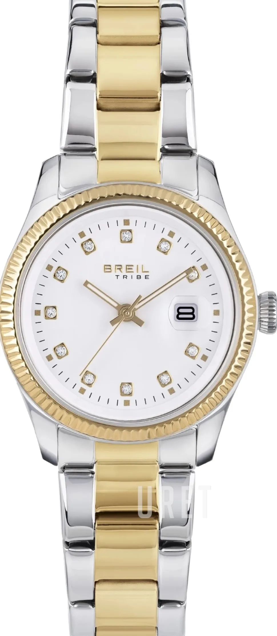 | Bezel (ring): | Gulguldtonat stål |